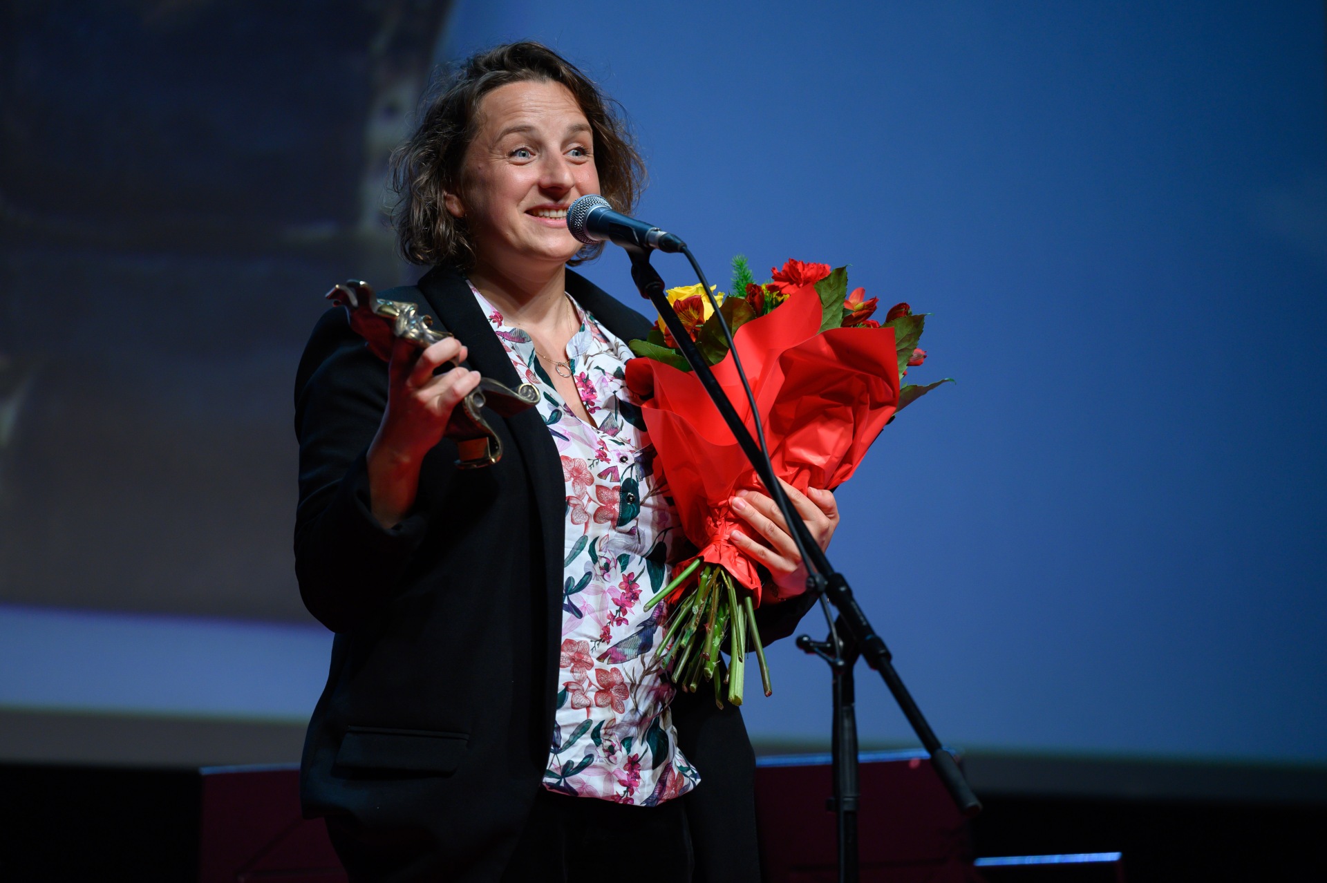 Nagrodę z rąk Marzeny Majcher i Wojciecha Marczewskiego odebrała reżyserka filmu.